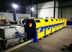 特點:Φ2mm鋼絲生產速度:20米/秒,產量:1700Kg/h,Φ1mm鋼絲生產速度:30米/秒,產量:650Kg/h